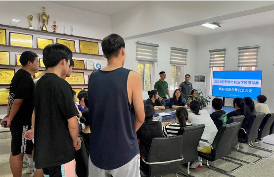 2023年无锡市中学生校园篮球赛中职组的比赛定于6月13-17日举办。为充分调动我校男、女篮队员的内驱力,同时做好学生的运动安全管理工作,体育教研室于6月12日召开无锡中学校园篮球联赛赛前动员会暨安全教育会议,基础教学部党总支副书记杨凤琴,基础教学部副主任、体育教研室主任许莹霞参与会议,体育教研室副主任杨阳主持会议。