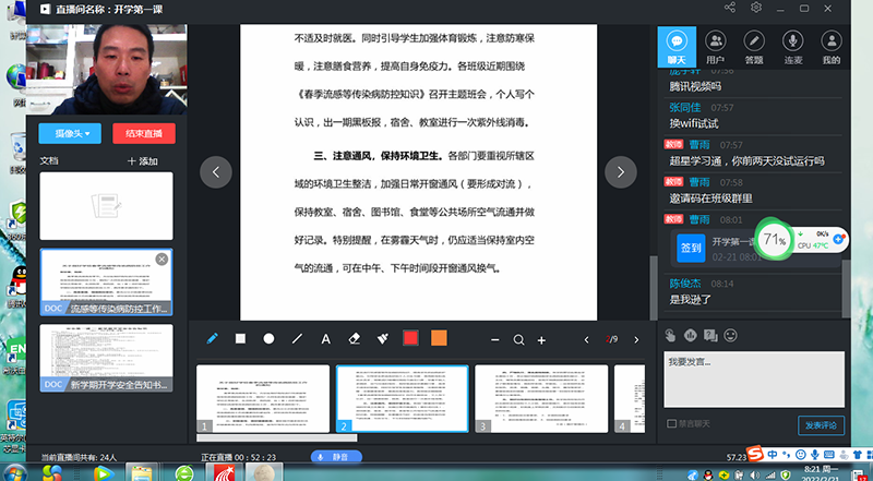 在本次活动中,学院班主任老师及辅导员通过在线直播的方式开展开学第一课。