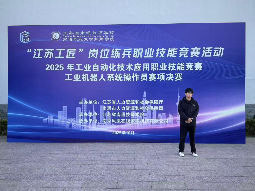 近日,2025年江苏省工业自动化技术应用职业技能竞赛工业机器人系统操作员决赛在江苏省南通技师学院圆满落幕。作为省级一类职业技能赛事,本次竞赛由江苏省人力资源和社会保障厅主导,吸引全省36所院校的174名选手同台竞技,上演了一场高水平的技能比拼盛宴。开云手机客户端机电工程学院表现亮眼,刘森老师凭借精湛技艺斩获教职工组一等奖,学生阙豪奋勇争先摘得学生组一等奖,师生双冠的优异成绩彰显了学校在工业自动化技能人才培养领域的硬核实力。