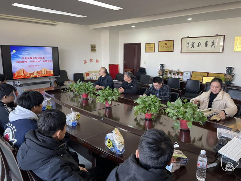 学院关工委常务副主任薛刚云首先与学生代表展开亲切交流。他从生活细节与学业发展双方面传递关怀,叮嘱同学们在紧张的学习之余要注重身心健康,遇到生活难题或思想困惑时,可随时通过学院搭建的结对渠道寻求帮助。同时,薛副主任结合青年成长规律强调,同学们需牢牢把握价值观塑造的关键时期,自觉树立正确的世界观、人生观、价值观,以“严于律己”的态度锤炼个人素养——既要扎实学好机电专业理论知识、苦练实践技能,更要坚定理想信念,将个人追求融入祖国现代化建设大局,最终用专业能力服务社会。