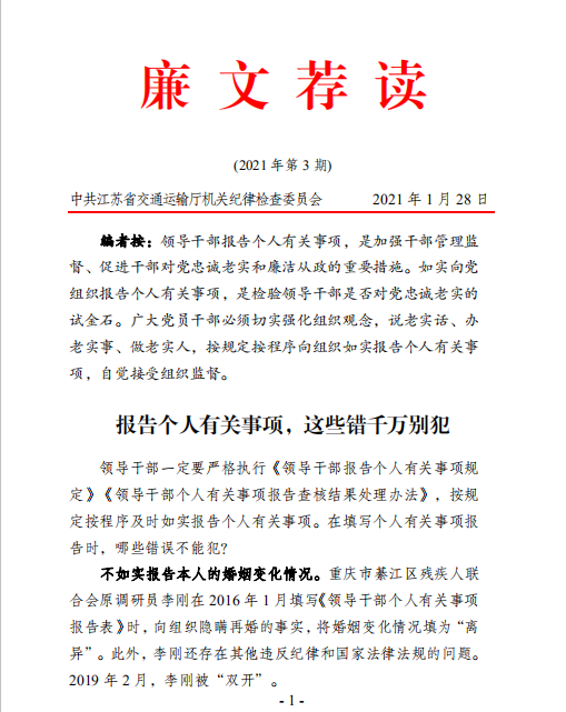 廉文荐读2021年第3期——报告个人有关事项,这些错千万别犯
