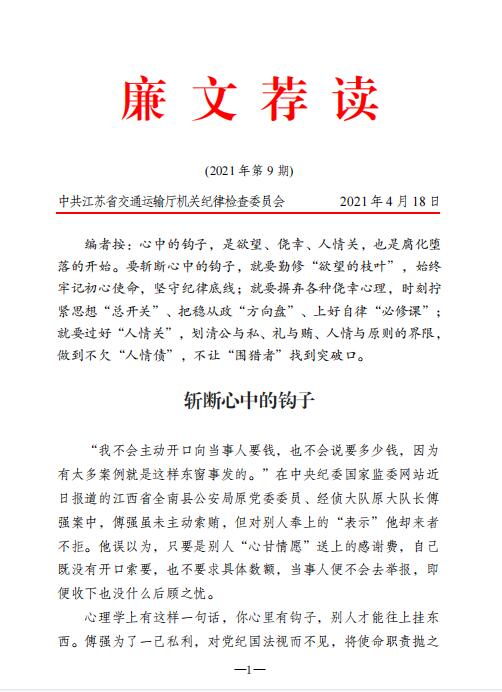 廉文荐读2021年第9期——斩断心中的钩子