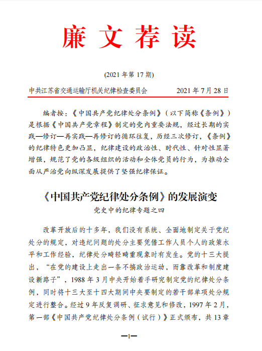 2021年廉文荐读第17期——《中国共产党纪律处分条例》的发展演变