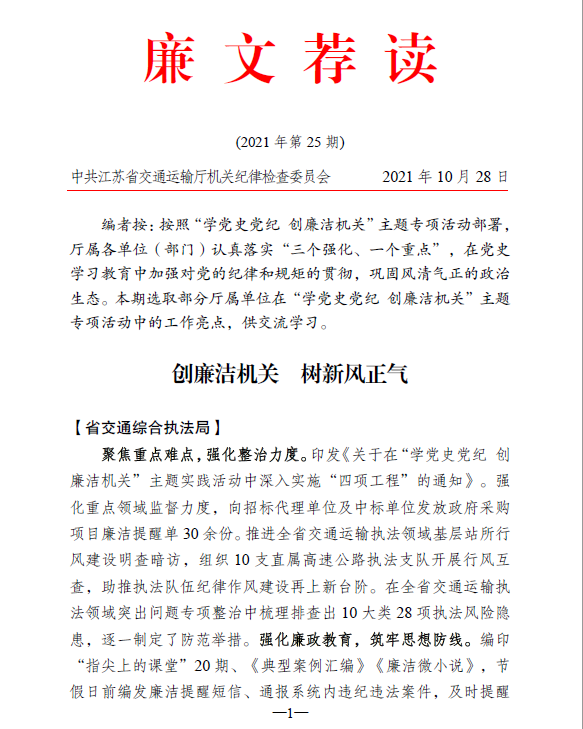 2021年廉文荐读第25期——创廉洁机关 树新风正气