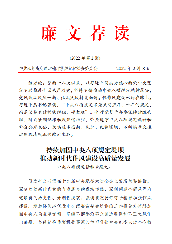 2022年廉文荐读第3期——加固中央八项规定堤坝
