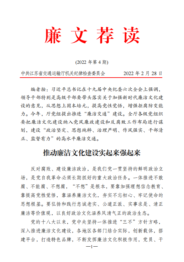 2022年廉文荐读第4期——推动廉洁文化建设实起来强起来