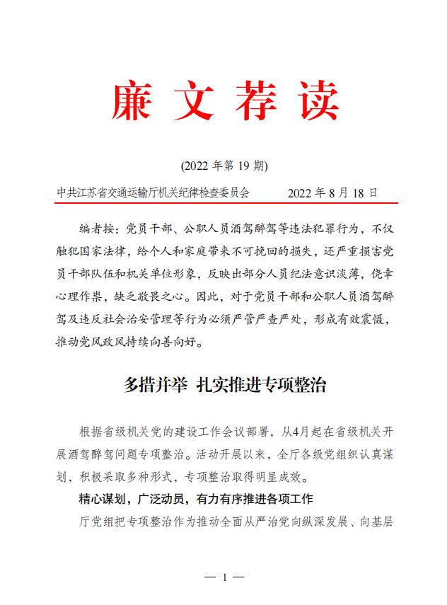 2022年廉文荐读第19期——多措并举 扎实推进专项整治