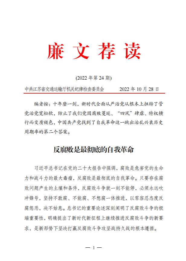2022年廉文荐读第24期——反腐败是最彻底的自我革命