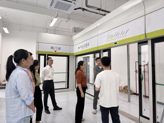 活动首站为无锡地铁江阴中医院智慧车站。车站站长详细介绍了目前智慧车站综合管控系统的应用情况,该平台依托视频AI识别技术,可实时感知乘客需求、实现运营服务智能化升级,为教师直观呈现智慧城轨应用场景。随后,教师团队前往花山地铁车辆段,与站台门系统、信号系统工程师深度研讨,围绕现场故障排查、设备优化改进等核心问题交流经验,深入掌握一线生产管理的痛点与难点;最后参观地铁车辆检修库,实地察看车辆维护保养流程与技术规范,进一步丰富对城轨车辆运维体系的认知。