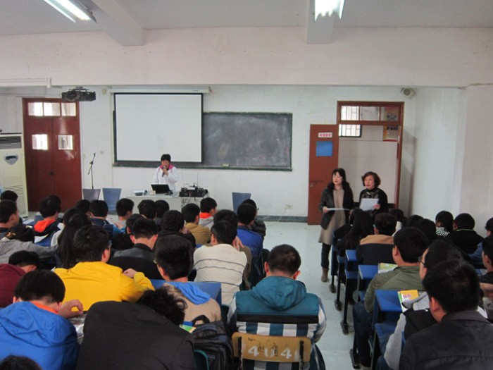为积极响应无锡市滨湖区疾病预防控制中心近日发出的“关于开展滨湖区爱国卫生月和健康教育宣传月活动的通知”文件,2014年4月11日中午12点30分,无锡市荣巷社区卫生服务中心的薛医生和肖医生来到我系做了题为“建设健康城市、服务群众健康”的宣传讲座。交通工程系13级全体新生积极参加,聆听了讲座内容。校医务室庄严主任、交通工程系毛兰霞书记、交通工程系金龙老师全程参加。