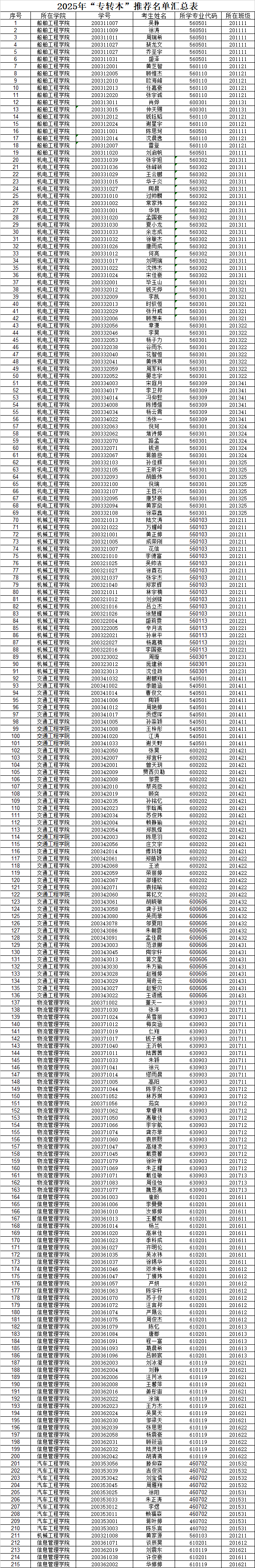 根据江苏联合职业技术学院《关于做好2025年五年一贯制高职(高师)“专转本”报名工作的通知》(苏联院招【20251号)精神,我校开展了专转本报名推荐工作。经考生自愿报名、班主任和任课教师推荐、学院初审、教务处审核等程序,最终有215名学生通过审核,拟推荐参加专转本考试,现将名单予以公示(具体名单见附件)。如对公示对象有异议,请以书面形式,并署真实姓名向教务处反映,公示时间为110—114日。