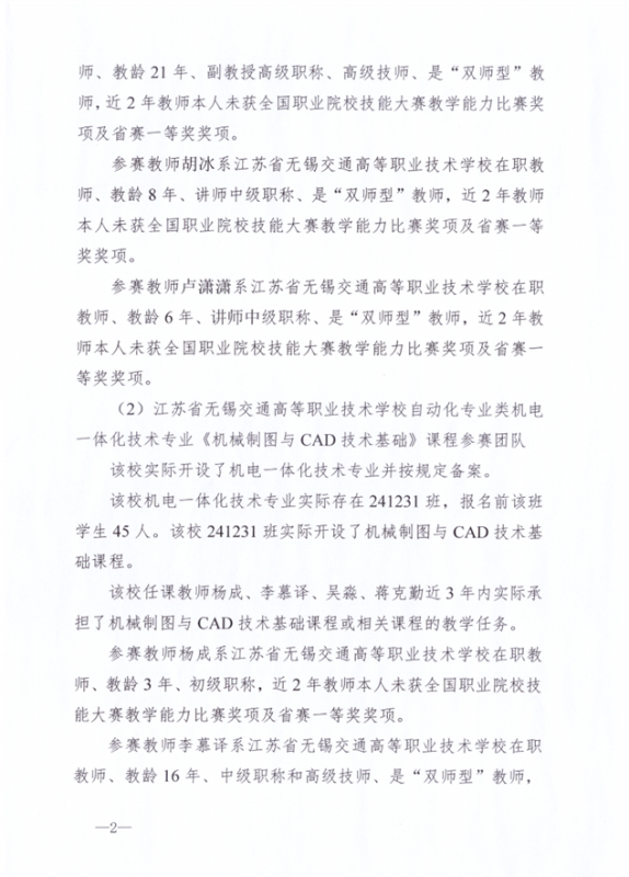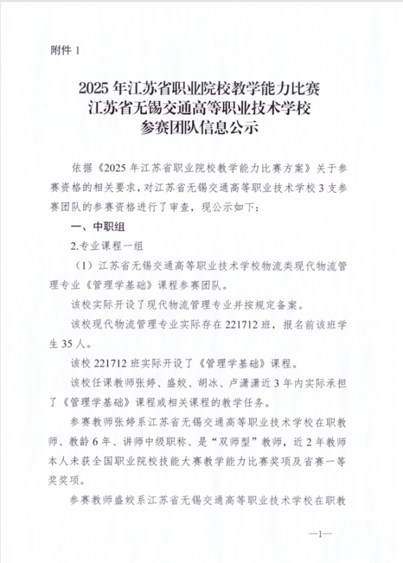 开云手机客户端物流类现代物流管理专业《管理学基础》课程参赛团队、自动化专业类机电一体化技术专业《机械制图与CAD技术基础》课程参赛团队和道路运输类专业类新能源汽车运用与维修专业《新能源汽车维护保养》课程参赛团队经校级比赛,市赛选拔推荐参加省赛。依据《2025年江苏省职业院校教学能力比赛方案》关于参赛资格的相关要求,对学校3支参赛团队的参赛资格进行了审查,现予以公示。