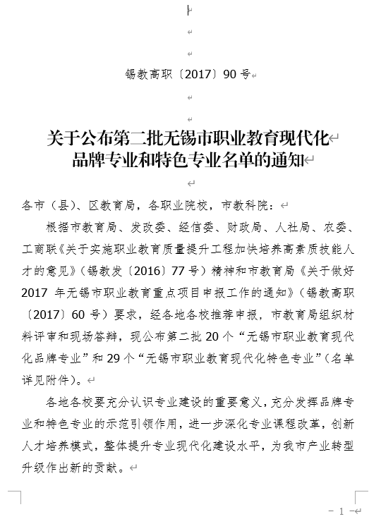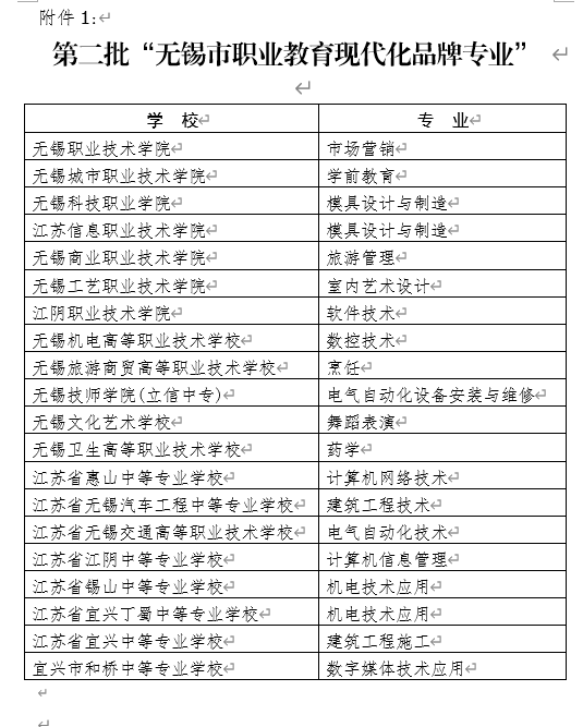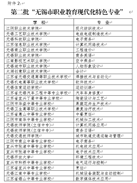关于公布第二批无锡市职业教育现代化品牌专业和特色专业名单的通知