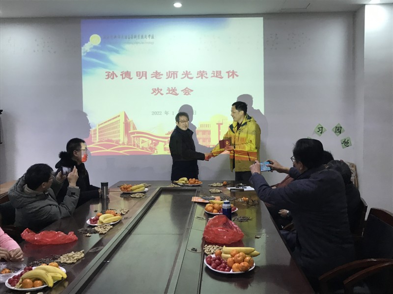 为深化教师文化建设,弘扬尊师重教传统美德,增强学院教师间的凝聚力,机械工程学院于110日举行了孙德明老师光荣退休欢送会。机械工程学院院长邢木清、校区管理处处长褚晓林、学院党总支副书记吴淼、副院长顾国强、锡澄校区分工会主席王演新、机械教研室全体老师及其他教师代表参加了欢送会。