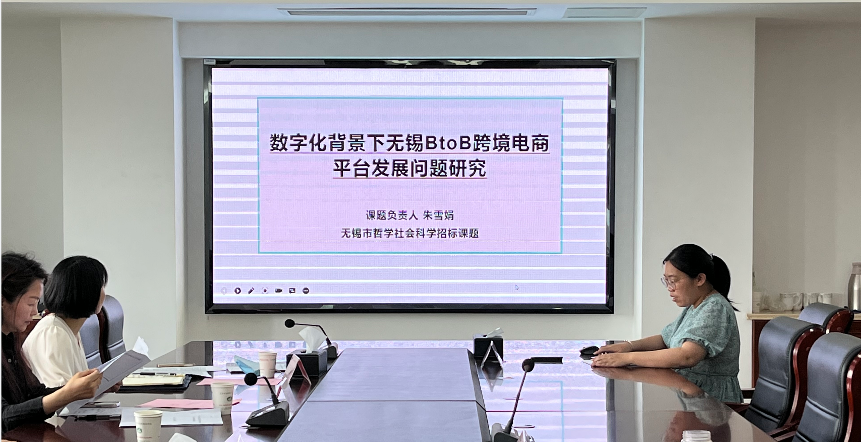 此次结题鉴定的课题有盛姣主持的《“1+X”证书制度试点背景下物流专业人才培养模式研究》1项,开题论证的课题有朱雪娟主持的《数字化背景下无锡 BtoB 跨境电商平台发展问题研究》、魏斌主持的《“黄鹄”号的时代宿命及其精神传承研究》共2项。评审会上,课题组对课题研究进行了汇报,评审专家逐一进行提问,课题组进行了相应回答,专家组给出了建议。经过集中评议,1项课题同意修改、完善后结题,2项课题同意修改后开题