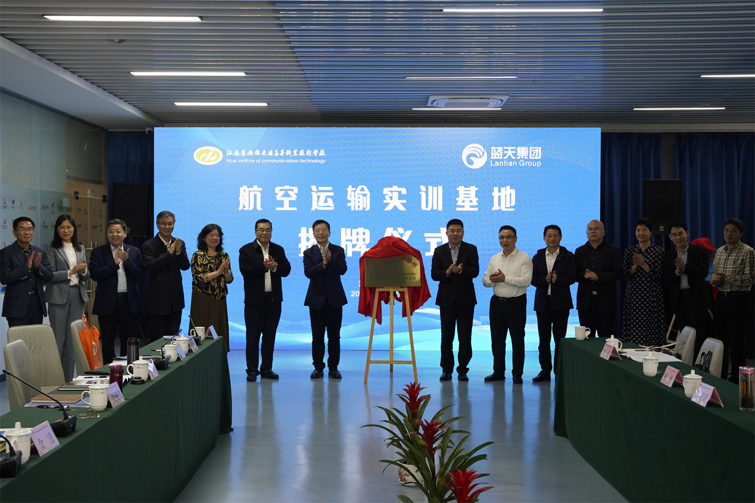 4月26日下午,学校与苏交科集团股份有限公司、蓝天集团联合举行“交通工程试验检测实训基地(苏交科集团检测认证有限公司无锡中心)”“航空运输实训基地”揭牌仪式。江苏省交通运输厅副厅长、党组成员金凌,苏交科集团股份有限公司副总裁何淼,南京蓝天教育集团有限公司董事长朱正华等参加了揭牌仪式。参加江苏省交通运输职业教育行会指导委员会主任委员工作会议的各位领导见证了揭牌仪式。