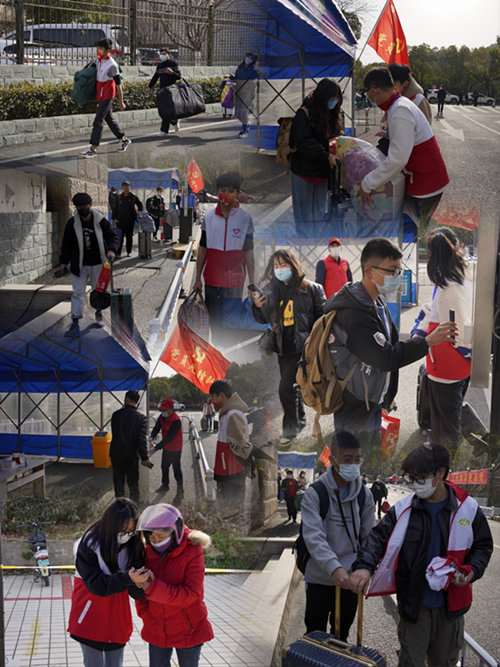 3月5日,恰逢全校学生在疫情稳定后返校,我们的青年志愿者穿梭于校园各处,向每一位需要帮助的同学和家长伸出援助之手。“请问你需要帮忙吗?”“行李太重了,我帮你吧”,朴素的话语,简单的红色志愿服,却是疫去春来的校园内一道亮丽的风景线。