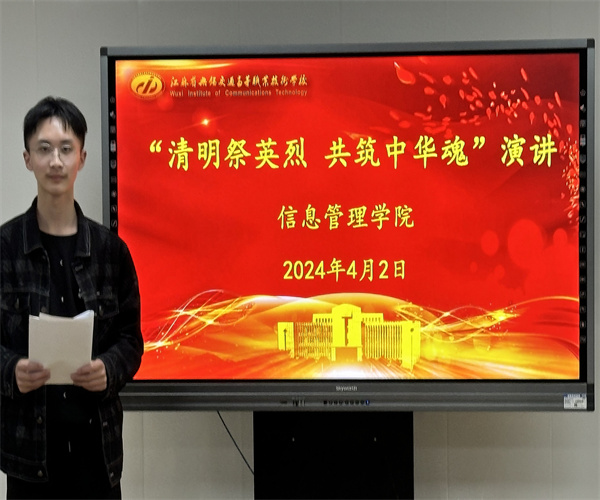 信息管理学院团总支开展“清明祭英烈,共铸中华魂”主题演讲活动。同学们慷慨激昂地讲述革命先烈的英勇故事,深刻体会新时代青年应该珍惜来之不易的生活,奋发图强,苦练技能,助力强国建设。