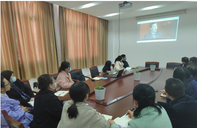 接着,全院教师集体观看了《学习领会党的十九届六中全会精神公开课》之“‘两个确立’具有决定性意义”和“马克思主义中国化新的飞跃”两个专题。然后,进行了交流发言,财商教研室党支部书记卢潇潇和物流教研室党支部书记朱雪娟分别分享了学习的心得体会。