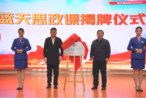 随后,朱正华与范次猛共同为“蓝天思政课”揭牌,红绸落下标志着课程正式启航,现场掌声雷动,全体参会人员合影留念,定格这一里程碑式的瞬间。