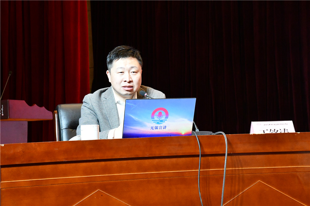 4月14日,学校举办党史学习教育专题辅导报告会。中共无锡市委宣讲团成员、市委讲师团团长王铭涛作宣讲报告。全体党员干部、入党积极分子、学生代表400余人现场聆听了报告。宣讲会由学校党委书记、校长李虎主持。