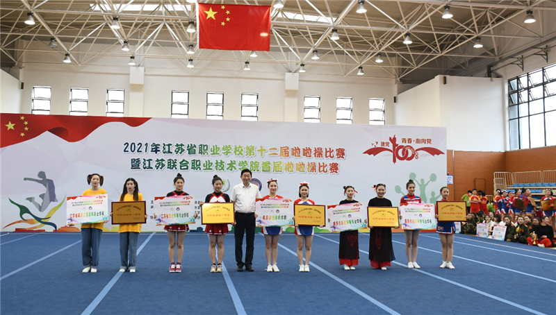 本届啦啦操比赛既展示了整齐划一的花球和街舞示范套路,更呈现了“青春心向党”创意编排,近900名运动员逐队展示、挥洒青春无畏、逐梦扬威的汗水。开幕式精彩纷呈、亮点频出,四支冠军队伍的运动员们再一次用青春洋溢的笑容、整齐划一的步伐、浑然一体的表演完美呈现了当代职业学校学生的风貌;近350名运动员代表同场跳动,用青春的力量献礼中国共产党筚路蓝缕、砥砺奋进的百年历程。两天的比赛,节凑紧凑,安排合理,井然有序,成绩喜人,赛场上的每一位运动员都积极拼搏,赛场边加油声此起彼伏。最终南京市玄武中等专业学校获得中职组团体总分第一名,运河高等师范学校(江苏联合职业技术学院运河高等师范学校办学点)获得高职组团体总分第一名。