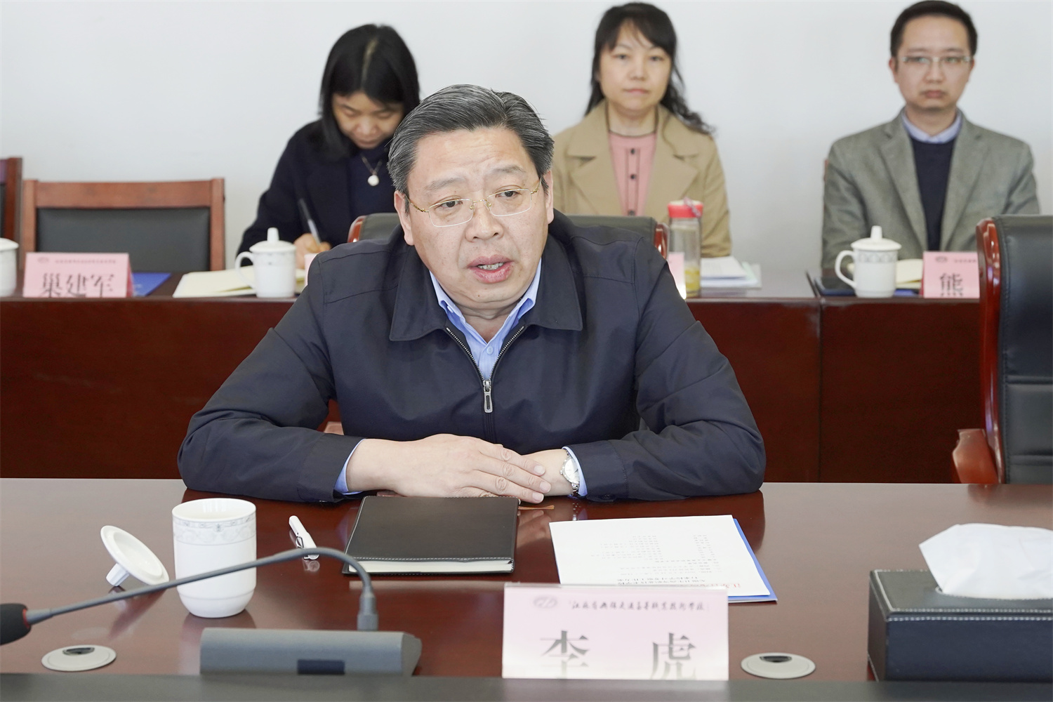 314日,无锡卫校党委书记王强一行来校就办学水平评估迎检准备工作开展交流。学校党委书记、校长李虎,党委副书记、五级职员朱雨兰,党委委员、副校长耿兴华参加会议。