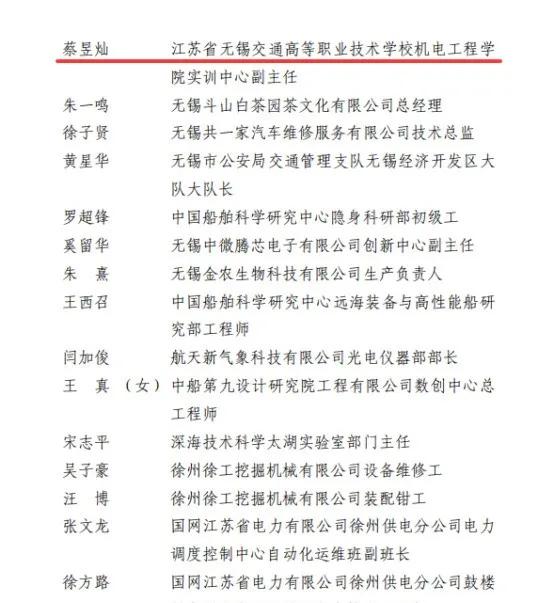 12月19日,江苏省总工会、江苏省人力资源和社会保障厅正式公布2025年江苏省五一劳动奖评选结果,我校机电工程学院蔡昱灿老师凭借在职业教育领域的卓越贡献光荣上榜。作为扎根教学一线十余年的职教先锋,他以“匠心育人”的执着与创新,为培养高技能人才、推动职业教育高质量发展树立了标杆。