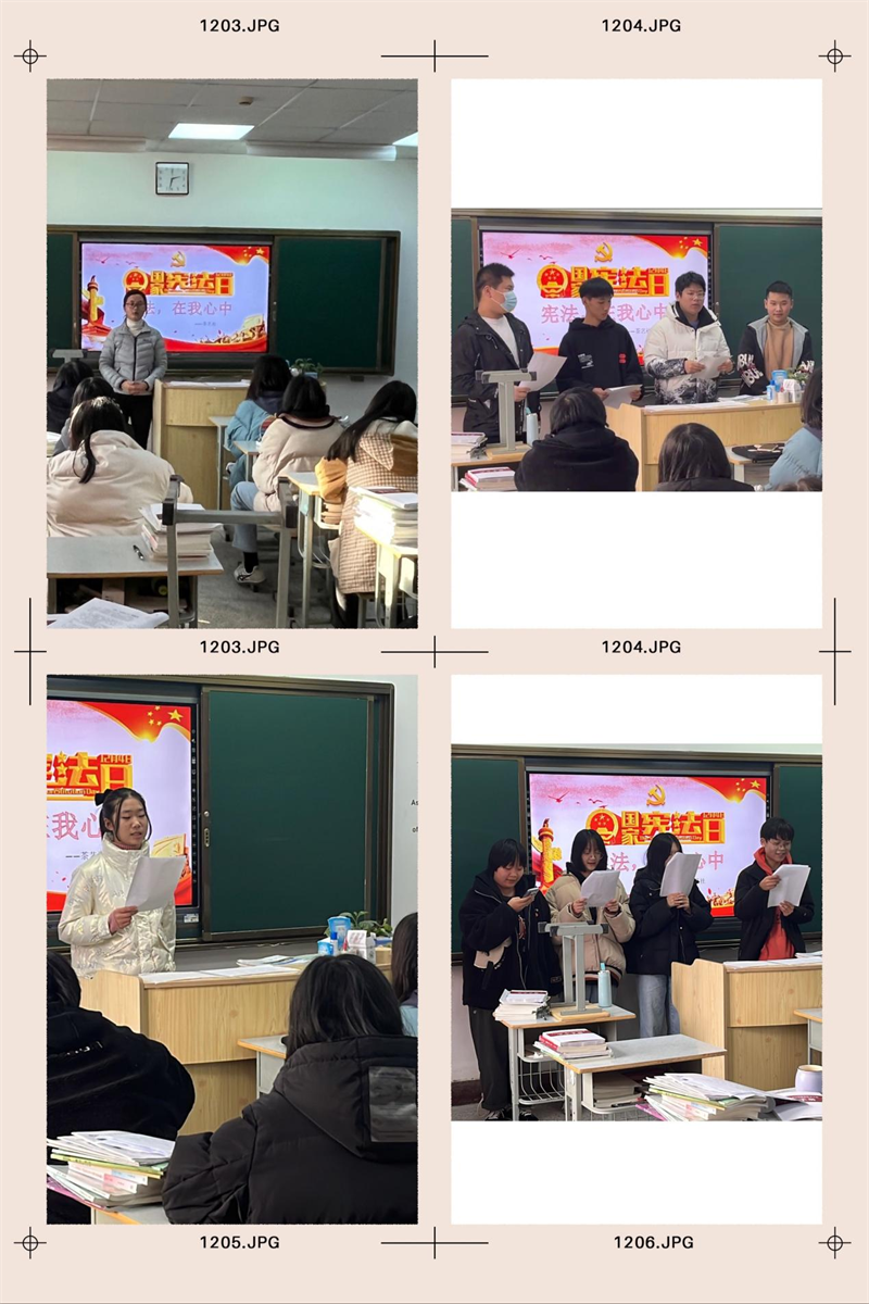 “宪法在我心中,像慈母,又像严父,扶我走过岁月的坎坷。”活动中,同学们齐声朗诵,用稚嫩却充满坚定的嗓音歌颂对宪法的尊崇之情。“宪法在我心中,幸福不再搁浅,宪法在我心中,责任重于泰山,宪法是庄严的使者,宪法是神圣的承诺”。嘹亮的朗诵声在校园久久回荡,形成了振奋人心的巨大力量。一句句铿锵有力的话语,一字字掷地有声的承诺,社员们用激情饱满的诵读表达了对宪法的尊崇。铮铮誓言是弘扬宪法精神的宣言,是履行宪法使命的承诺。整齐而洪亮的诵读声从校园传出,铿锵有力的诵读声,凸显出宪法的庄严和神圣。