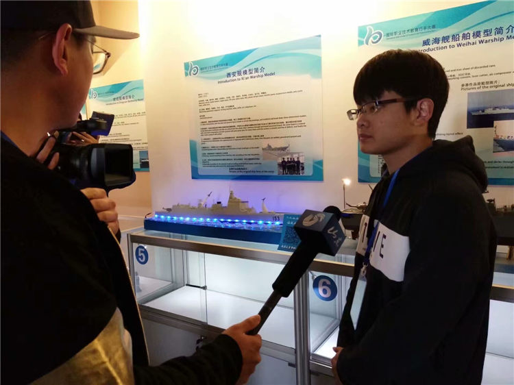 深蓝社参赛选手丁磊向专家讲述“威海舰”船模设计制作理念