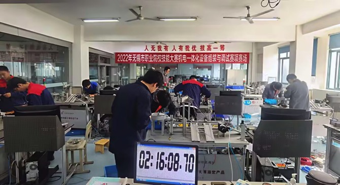 陈星哲在校期间积极参加技能竞赛。技能竞赛的训练阶段,宛如一场充满挑战与成长机遇的漫长征途。最初,面对复杂的技能要求和纷繁复杂的训练任务,他犹如置身迷雾之中,压力如山般沉重。但随着超过150天、1200小时以上的坚持和努力,他逐渐找准了自己的节奏,不断的对细节的练习和打磨,让他的专业技能水平不断提升,这种提升不仅是操作层面的熟练,更是对技能精髓的深刻领悟。每一次练习都是对细节的精心打磨,使得技能掌握日臻完美。最终他在2022年无锡市技能竞赛机电一体化设备组装与调试中职组项目荣获三等奖。