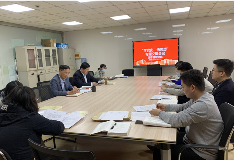 2021年4月20日下午,信息管理学院党总支“学党史,悟思想”专题交流会议在学院党员活动室召开,校党委委员、副校长邢勇及总支全体党员参加交流研讨,交流会由院长郑智飞同志主持。
