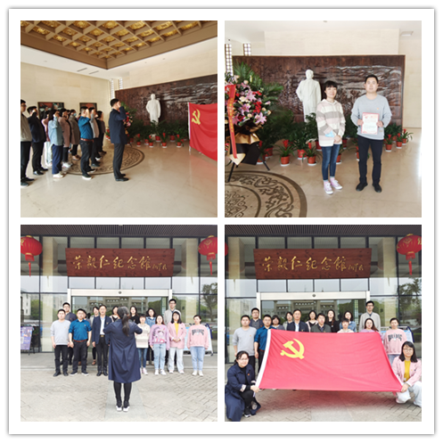 活动开始,全体党员集中在纪念馆门口高唱《没有共产党就没有新中国》,表达了爱党爱国的情怀。接着,面对鲜红的党旗,总支负责同志作为领誓人,带领党员们一起高举右手,重温入党誓词。“我志愿加入中国共产党……随时准备为党和人民牺牲一切,永不叛党。”铿锵恢宏的誓词,震撼着在场的每一位党员,一字一句,神圣而豪迈,体现了党员同志对中国共产党的无限忠诚。此外,还为4月份入党的同志赠送了“政治生日”卡,以此增强党员的荣誉感和归属感,强化党员宗旨意识和责任意识。最后,党员们依序参观了荣毅仁事迹陈列馆、荣氏故居、移建的荣毅仁北京旧居、大公图书馆等,共同回顾了以荣毅仁为代表的荣氏家族为中国近代民族工商业的发展和对社会公益事业所作出的杰出贡献。
