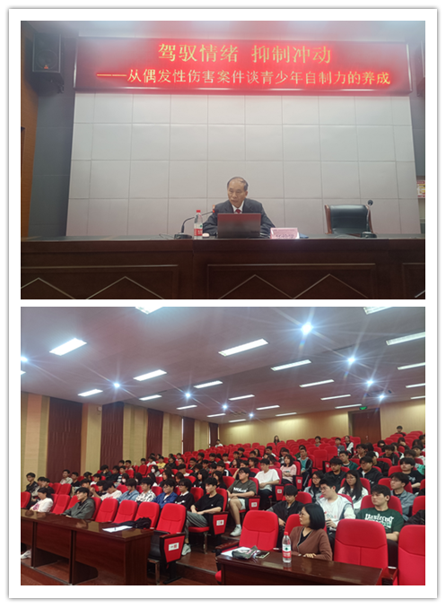 华庭长围绕“驾驭情绪,抑制冲动”主题,从偶发性故意伤害案件特点、案情介绍、案例点评、相关法律适用介绍等方面,用朴实的语言、生动的案例,从偶发性伤害案件谈青少年自制力的养成,给出了驾驭情绪、抑制冲动的警示。华庭长多年来一直参与办理过许多有重大影响的刑事案件,有着丰富的案件审判经验。本次讲座华庭长以自己多年经验,用大量的案例一一剖析,讲解详实、内容生动、案例丰富,启示深刻。最后,华庭长告诫同学们,要做情绪的主人,一是要懂法律,增强犯罪后果的意识。二是忌冲动,防止变为刑事被告人。三是会自护,避免成为案件受害人。
