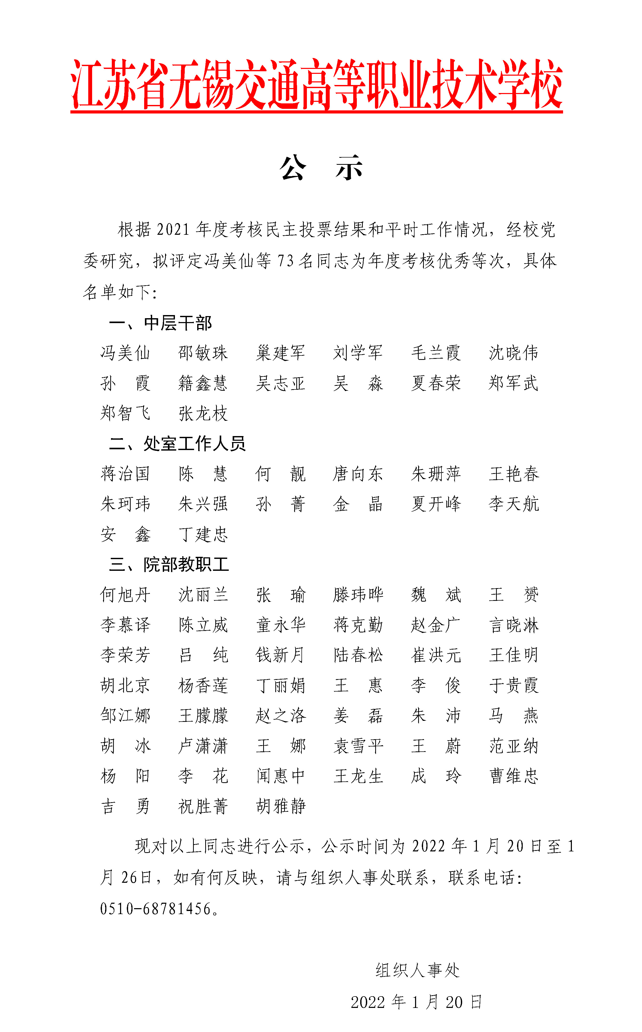2021年度考核优秀等次人员名单公示